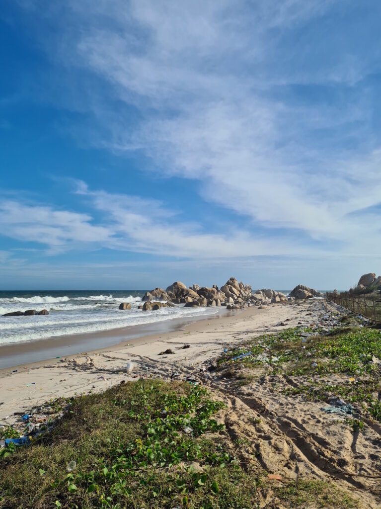 Unsere Route führte uns weiter durch landwirtschaftliches Gebiet, das jedoch zunehmend dichter besiedelt ist. Das spiegelt sich auch entsprechend im Verkehrsaufkommen wider. Angekommen an der Küste wurden wir leider etwas enttäuscht, denn überall an den „freien“ Küsten und Stränden liegt Müll in alle Richtungen. Das im Land immer noch vorherrschende Müllproblem wird einem hier richtig bewusst.
