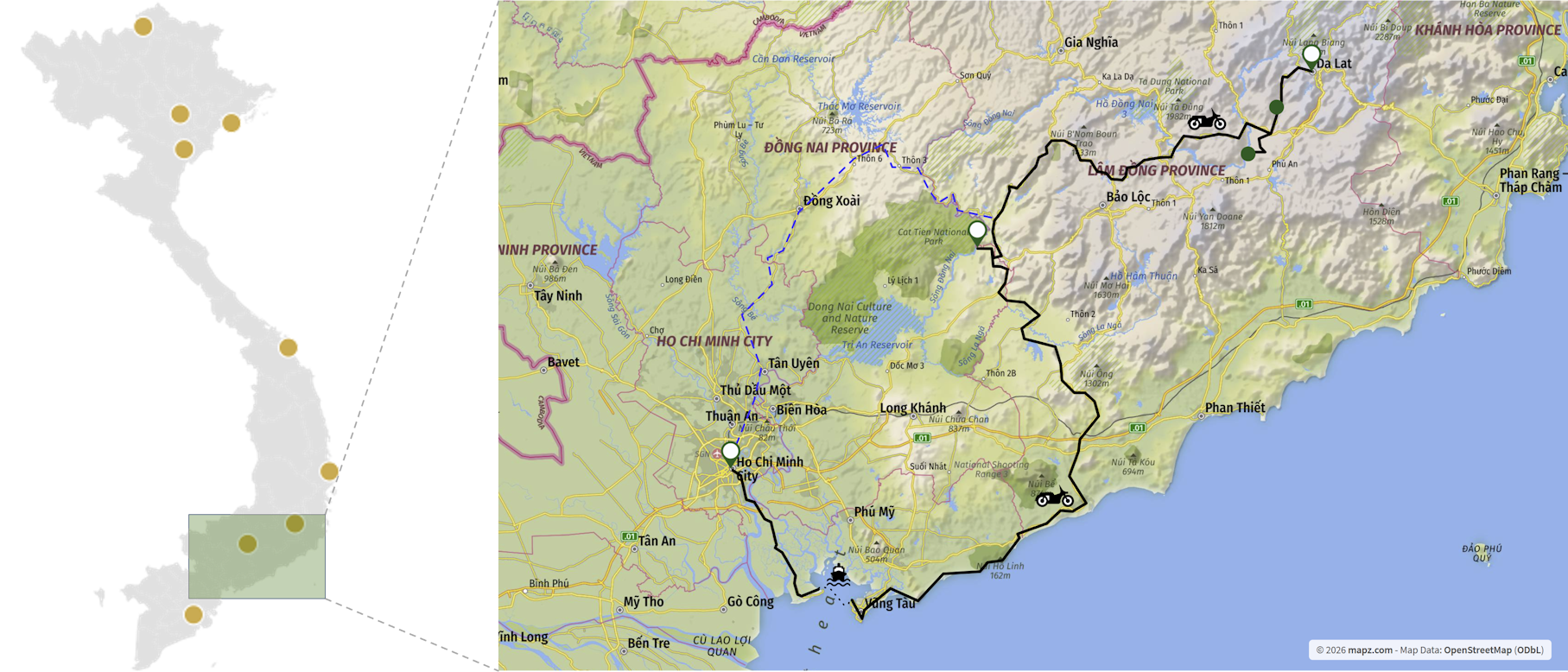 Motorradtour durch Südvietnam – Die Route